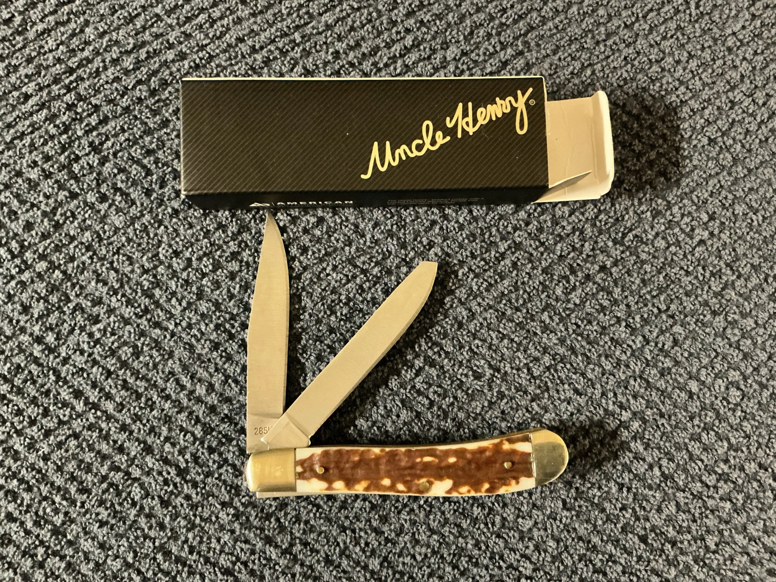 Shop › Uncle Henry 285 UH Image 1 of 2 Image 2 of 2 Uncle Henry 285 UH $24.50 Uncle Henry next generation staglon folding trapper. New in box Quantity: Add To Cart Added! Uncle Henry next generation staglon folding trapper. New in box